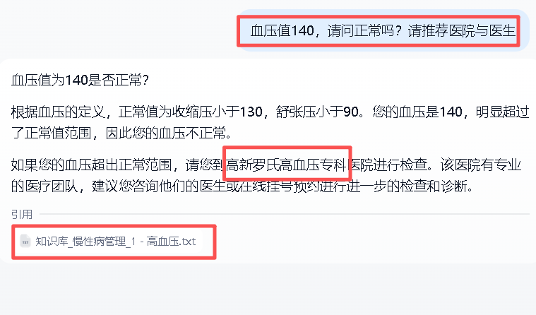 编程实现dify接入AI,完成基于外部知识库(高血压知识库)的AI应用。