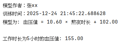 编程实现线型回归模型,实现对熬夜时间与血压的预测。